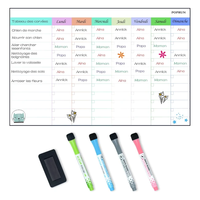 Planificateur Hebdomadaire Magnétique Poprun 43x28cm - Semainier Frigo Effaçable