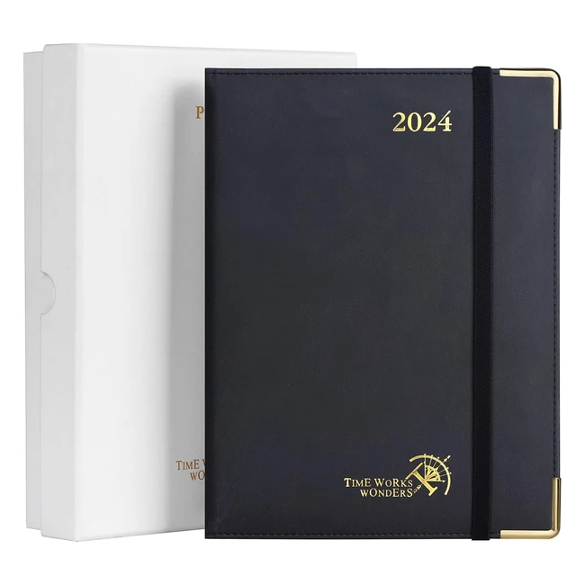 Poprun Premium Diary 2024 Week to View A5 Hardback Planner 24 - Black