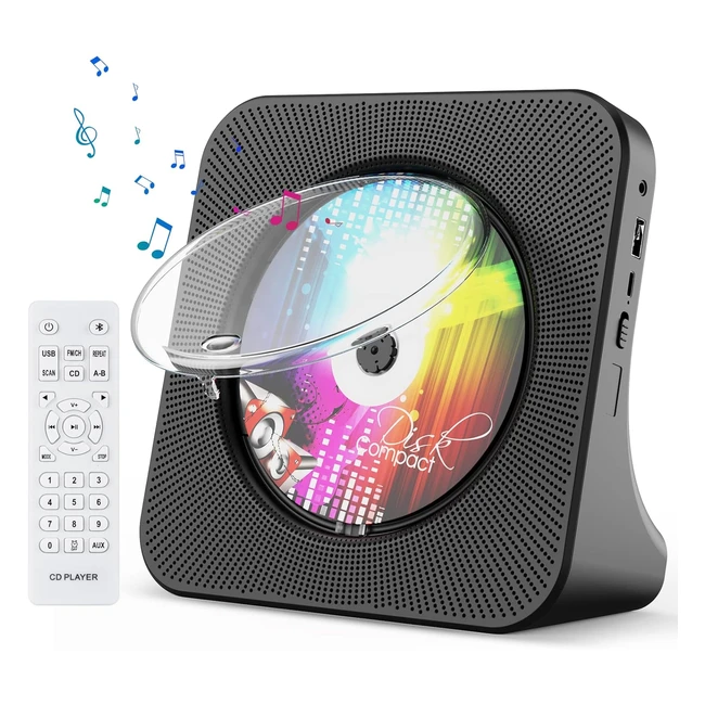 Portable CD Player with Bluetooth - Gueray Desktop CD Players - Double Hifi Speakers - FM Radio - Remote Control - USB Port - LCD Display - Black