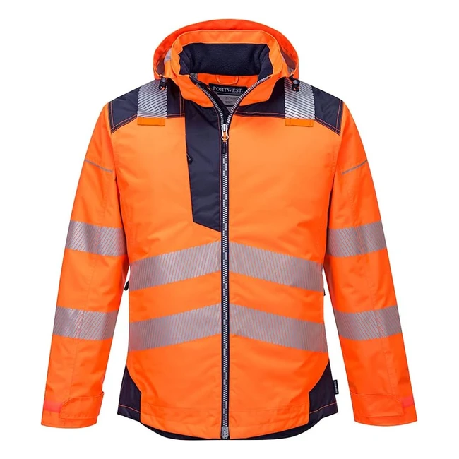Portwest PW3 T400ONRM HiVis Winterjacke Orange/Dunkelblau M - Reflektierende Paspeln, abnehmbare Kapuze