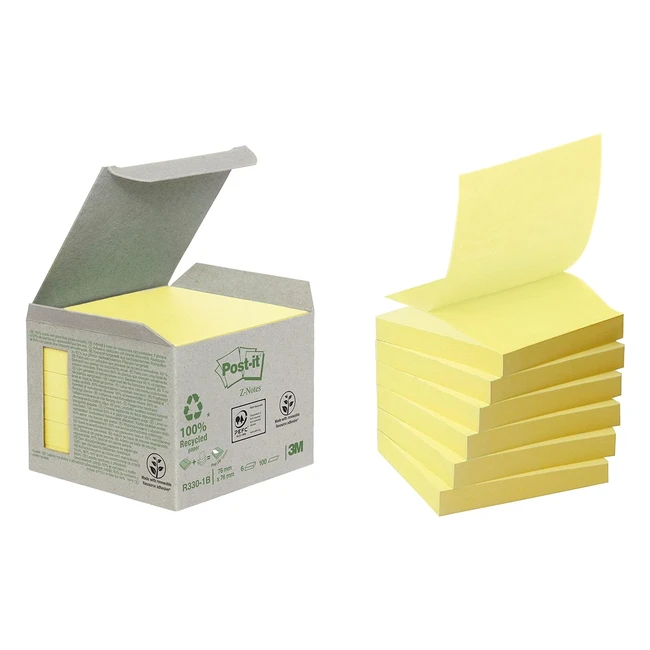 Post-it Z-Notes Recycles Jaune Canari 76mm x 76mm 100 Feuilles - Bloc de 6 blocs - Notes autocollantes pour prise de notes, listes de tâches et rappels