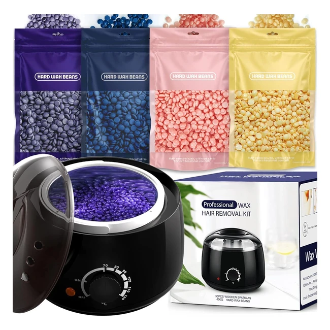 Professional Waxing Kit for Hair Removal - 4 100g Hard Wax Beads - Home Use