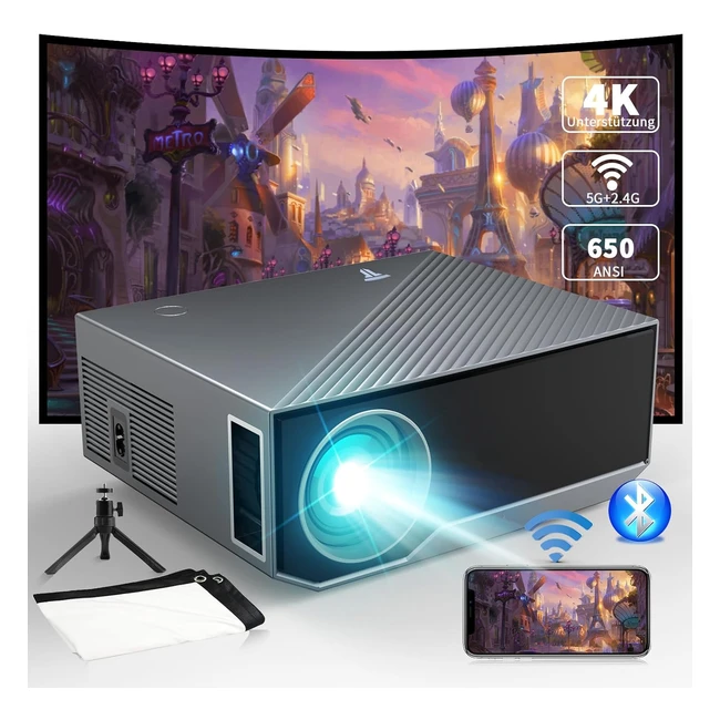 Projektor mit 5G WiFi Bluetooth Mini Outdoor Heimkino Full HD 1080p Tragbarer Projektor 4K 18000 Lumen Kompatibel mit iOS Android HDMI USB PS5 TV Stick Xbox Schwarz