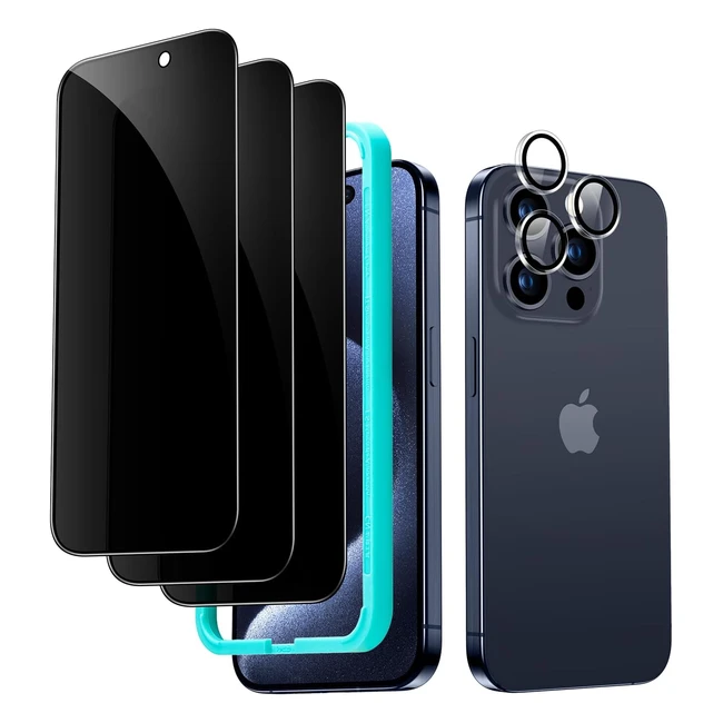 Protector Pantalla Privacidad iPhone 15 Pro Set Cristal Templado Antiespía Bordes Microcurvados