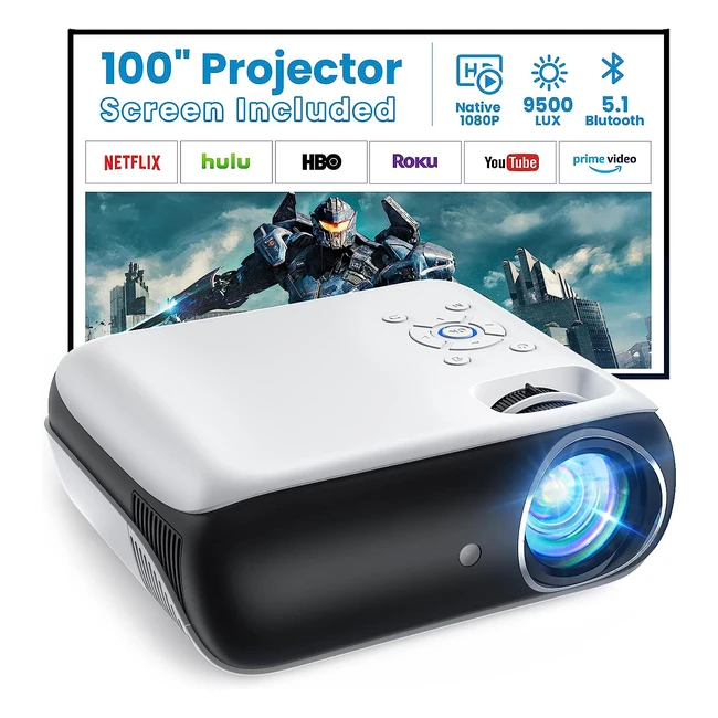 Proyector Bluetooth 1080p Nativo 9500L Portátil 4K - Pantalla Incluida