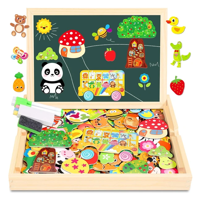 Puzzles en bois magnétiques 130 pièces Jojoin - Nouveau jouet Montessori 2023 - Modèle fruits animaux mignons - Éducatif enfant 3+