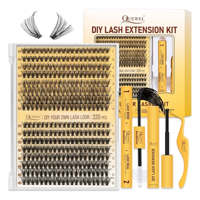 DIY lash extension kit with 320 pcs of 40D lashes clusters, bond and seal applicator tool, and glue remover. Create natural, cat eye, fluffy looks with mix lengths. Comfortable to wear and sleep in. Easy-to-use applicator tool. Strong bonding and waterproof seal. Mild formula glue remover. Enjoy DIY lash extensions at home!