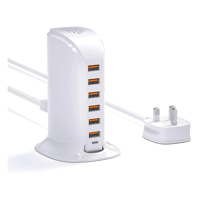 Qurzou USB Charger 50W - Multi USB Charger 6 Port - Fast Charging Station for iPhone, Samsung, iPad - White