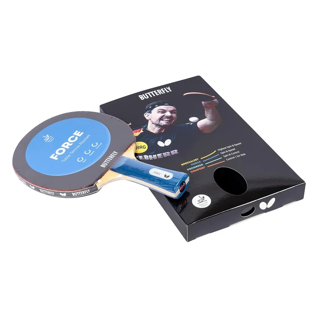 Raquette de tennis de table Butterfly Force - Professionnelle pour joueurs avancés - ITTF Noir/Rouge
