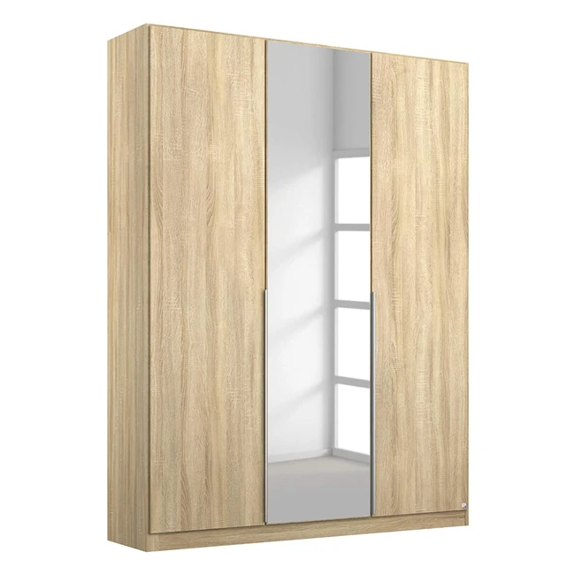 Rauch Möbel Alabama Schrank Kleiderschrank Drehtürenschrank Eiche Sonoma mit Spiegel 3-türig inkl. Zubehörpaket Classic 2 Kleiderstangen 5 Einlegeböden