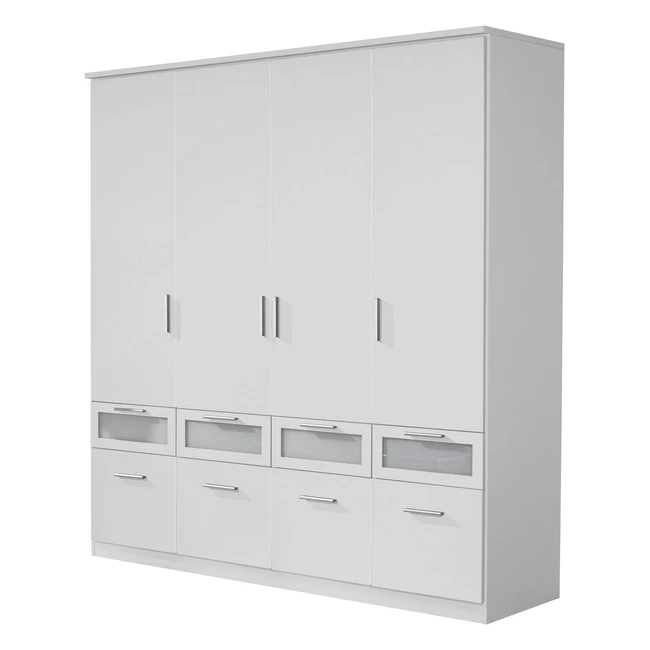 Rauch Möbel Bochum Kleiderschrank 4-türig mit 8 Schubladen weiß Milchglas BxHxT 181x199x56 cm Alpinweiß