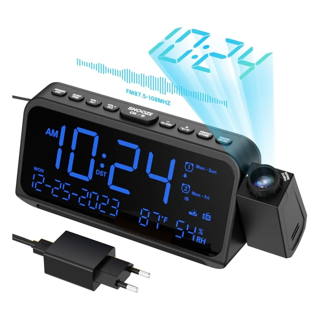 -5%Découvrez ce radio-réveil de projection offrant une projection cristalline ajustable avec 5 niveaux de luminosité. Profitez de la radio FM avec sleep timer et double alarme. Rechargez facilement avec port Type C et USB. Multifonction avec affichage de la date, jour, température et humidité. Créez un environnement confortable pour votre famille.