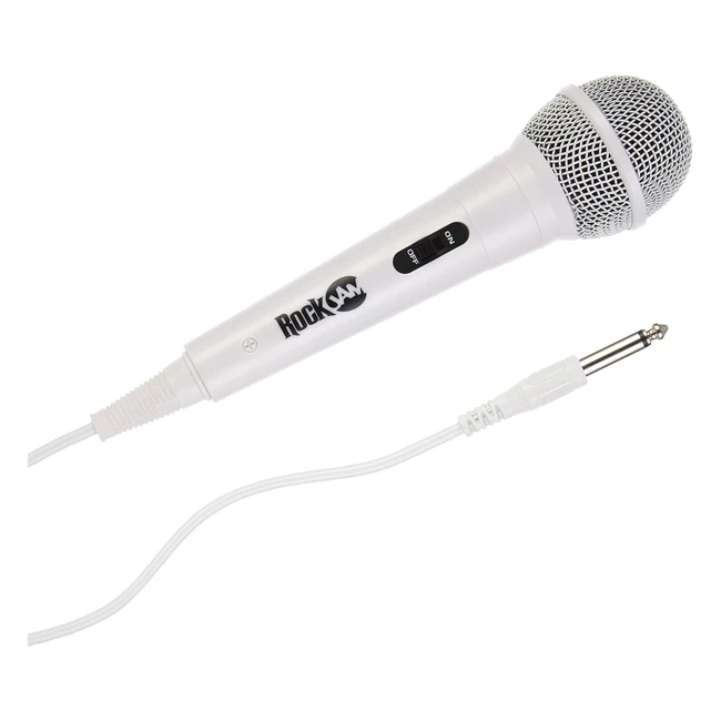 RockJam Karaoke Mikrofon, kabelgebundenes unidirektionales dynamisches Mikrofon mit 3 Meter Kabel, weiß