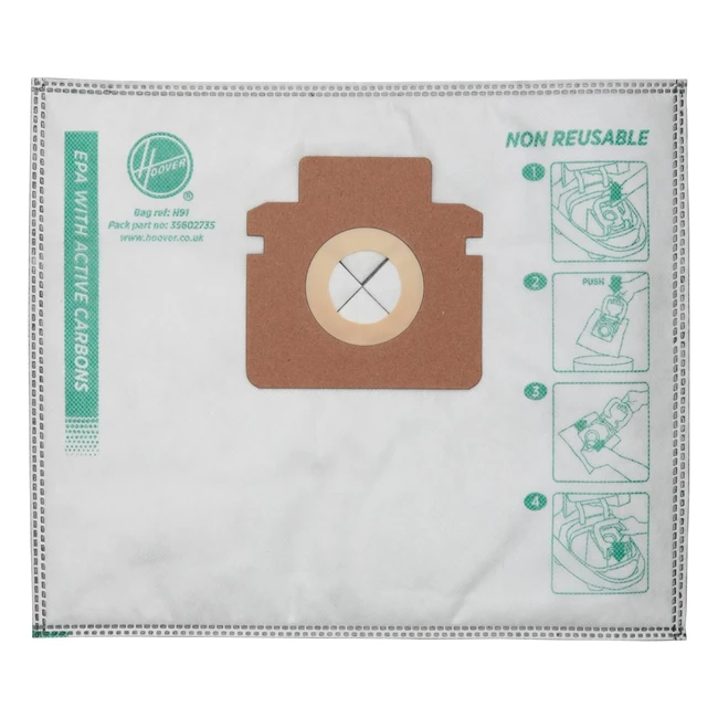 Sacs Aspirateur Hoover XL H91 Microfibre Pure EPA Charbons Actifs - Filtrage Supplémentaire - Lot de 4