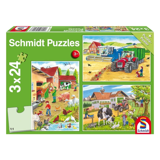 Schmidt Spiele 56216 Puzzle Green on the Farm 3 x 24 Teile