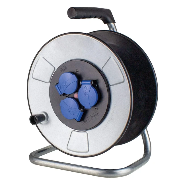Schwabe Metall Leerkabeltrommel ohne Leitung, 50m, IP44, 3 Schutzkontaktsteckdosen