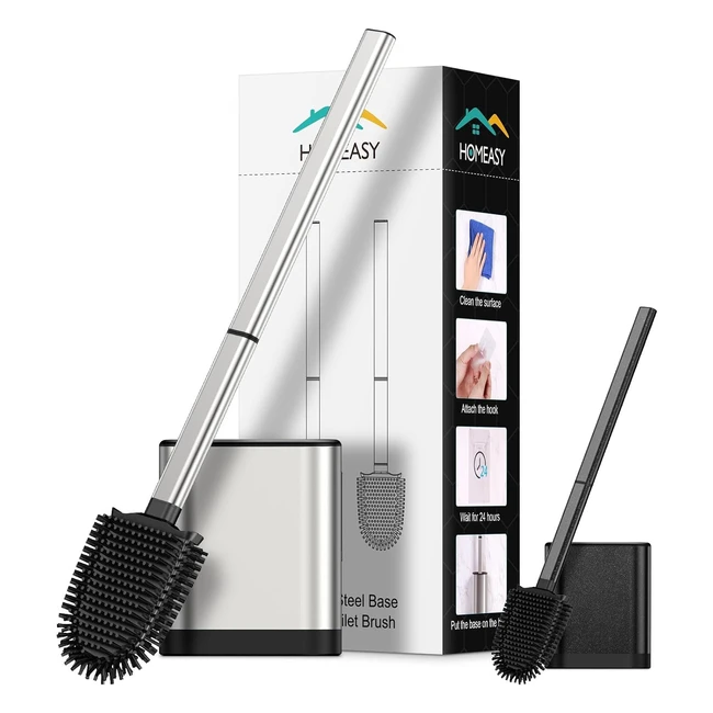Scopino WC Silicone Homeasy con Supporto Acciaio Inox - Pulizia Profonda - Morbido e Flessibile - 2 Adesivi Argento