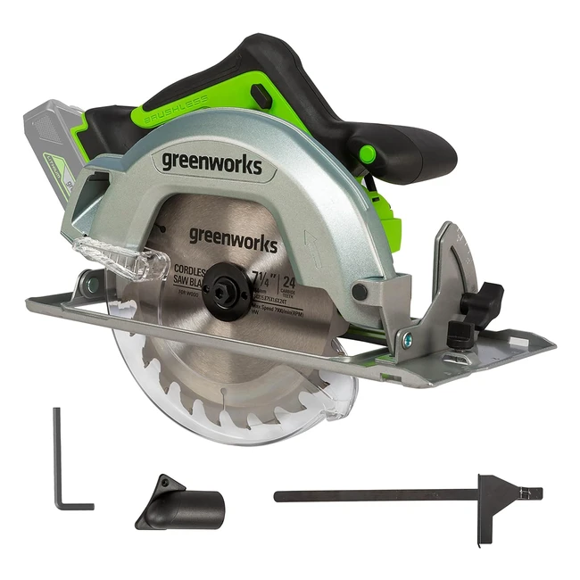 Acquista subito la potente, robusta e precisa sega circolare Greenworks GD24KS! Taglia rapidamente legname fino a 64mm di spessore con tagli dritti o obliqui. Base regolabile fino a 45° e motore brushless per maggiore potenza. Funziona con batterie Greenworks da 24V. Approfitta dell'offerta speciale: solo attrezzo senza batteria per chi già possiede un attrezzo Greenworks da 24V. Garanzia di 3 anni inclusa!