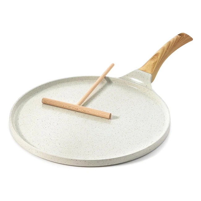 Sensarte Flachpfanne für Crêpes Omeletts Pfannkuchen mit Schweizer Granit-Antihaftbeschichtung Bakelitgriff Induktion geeignet PFOA-frei 26 cm Weiß
