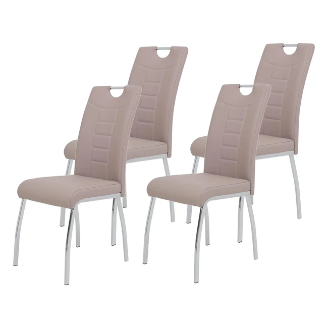 Acquista subito il set da 4 sedie in pelle sintetica cappuccino Andrea Apollo. Seduta e schienale con impunture, design elegante e resistente. Portata massima 140 kg.