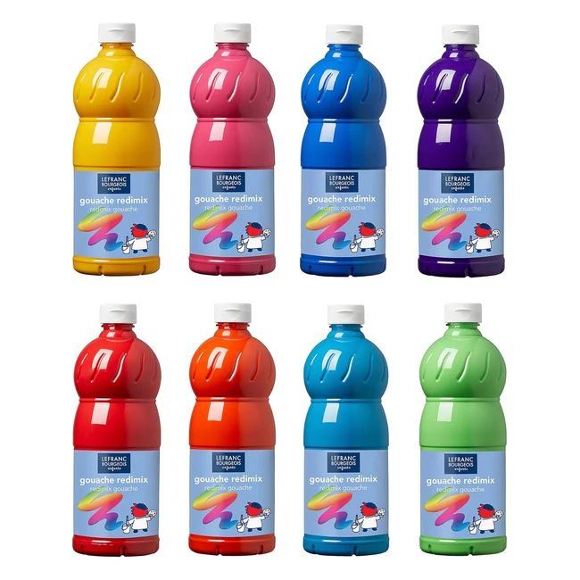 Set de 8 botes de 1L LeFranc Bourgeois Redimix Gouache Líquida para Niños - Colores Vibrantes