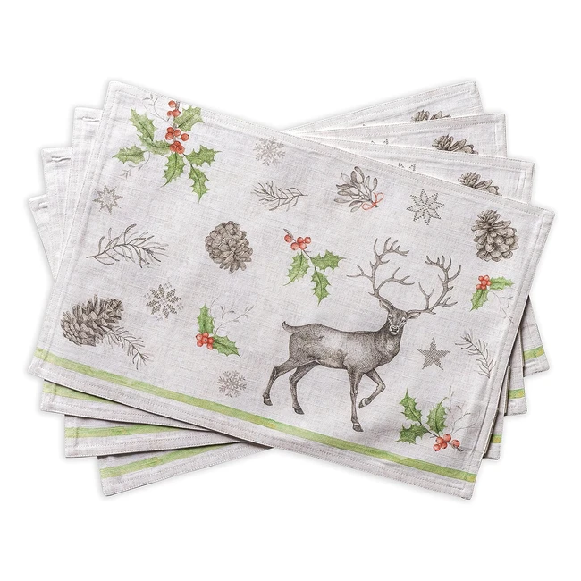 Set di 4 tovagliette Maison Dhermine Christmas Dew - 100% cotone - Per tavolo da pranzo, cucina, matrimonio - 33cm x 48cm