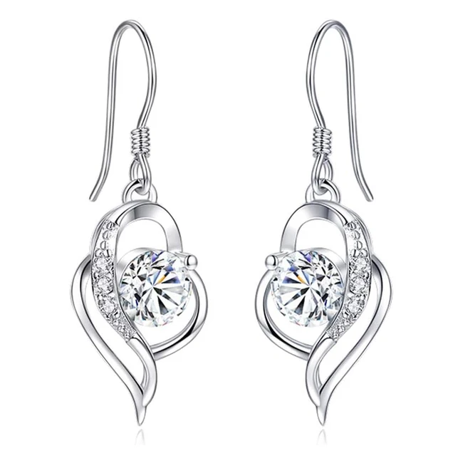 Shuxin Silver Dangle Earrings 925 Sterling Heart with AAA Cubic Zirconia - Hypoallergenic Jewelry for Sensitive Ears