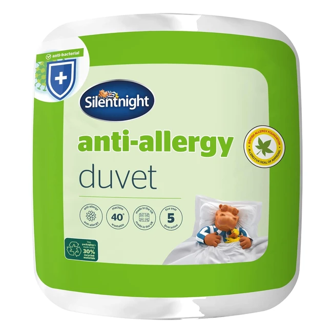 -41%Ultimate comfort and protection! Silentnight Anti Allergy Single Duvet is perfect for allergy and asthma sufferers. Approved by the British Allergy Foundation, it actively protects against bacteria and dustmites, reducing allergens. Made with high-quality materials for a great night's sleep. Machine washable for easy maintenance. 2-year guarantee. Made in the UK. Packaging may vary.