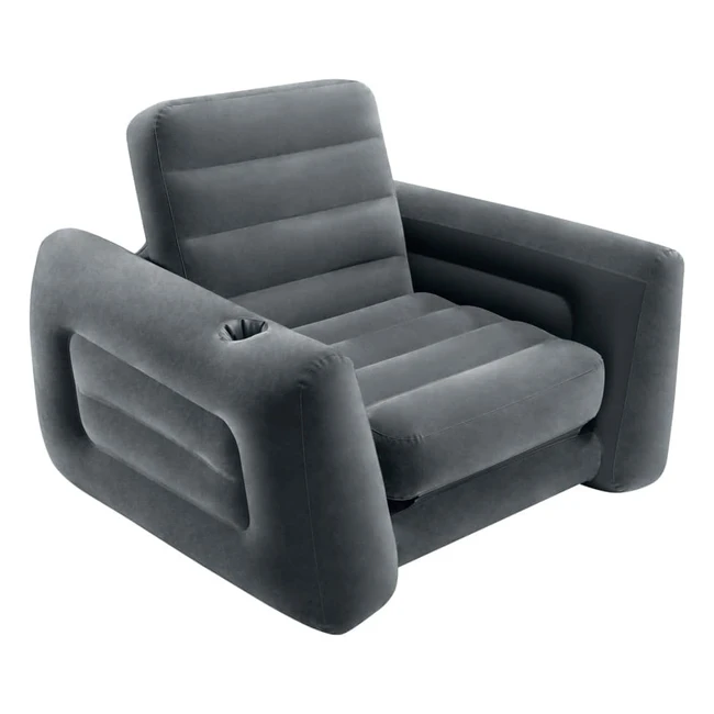 -26%¡Aprovecha esta oferta! Sillón cama hinchable individual Intex convertible a cama, color gris carbon. Superficie aterciopelada, estructura acanalada para estabilidad y comodidad. ¡Cómodo respaldo y reposabrazos con portabotellas! ¡Plegable y fácil de almacenar! ¡Soporta hasta 100kg!