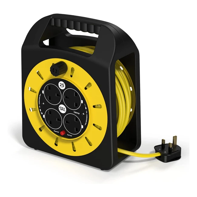SLX Outdoor Extension Lead 25m - Heavy Duty Cable Reel - Thermal Cut Out - 4 Socket - UK Plug