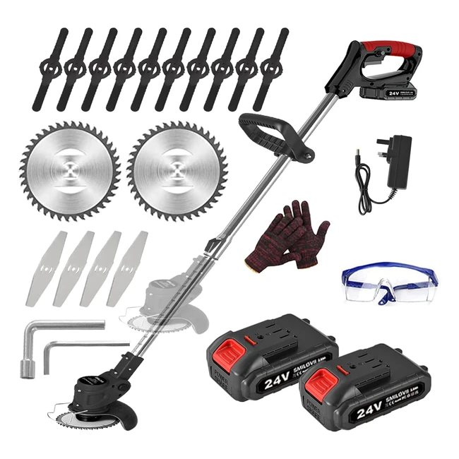 -15%Upgrade your gardening game with the Smilovii 24V Cordless Strimmer! Equipped with 2 powerful 2000mAh batteries, this electric grass trimmer ensures you never run out of power. With 6 metal blades and 10 plastic blades, it's perfect for cutting branches, thick grass, and tender lawns. The 90° cutting head and safety features make it easy and safe to use. Plus, the ergonomic design and adjustable telescopic rod make it comfortable for both men and women. Get yours today and enjoy a 2-year warranty!