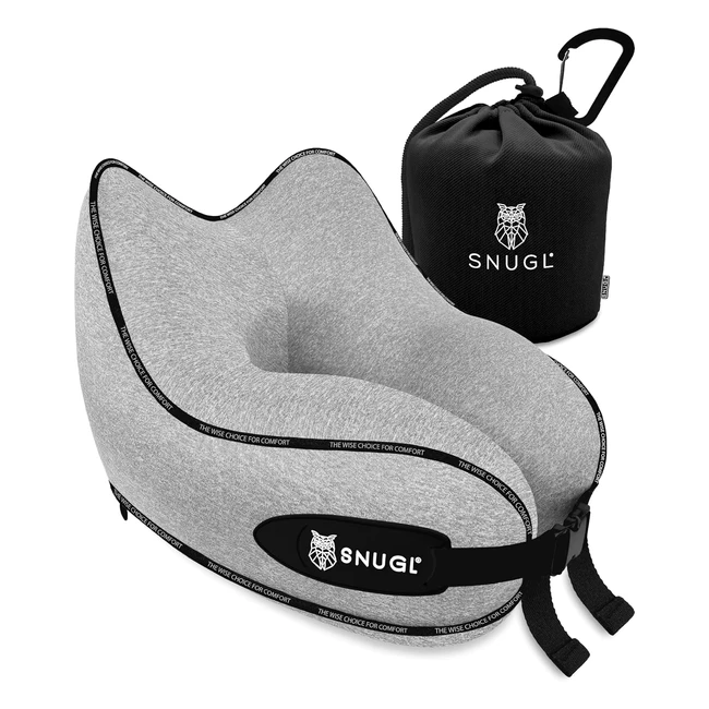 Snugl Travel Pillow Memory Foam Neck Cushion - Support Neck Pillow for Travel - Flight Essentials Grey