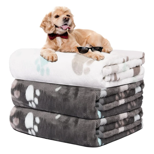 Soft Dog Blankets - Rezutan 3 Pack - Washable & Cute Paw Print - 106x76cm - #DogBlankets