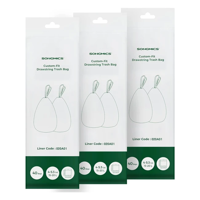 Songmics Bin Liners - Heavy-Duty Drawstring Rubbish Bags for 1520L Kitchen Bins - 3 Rolls, 120 Pieces - White KRB020A03