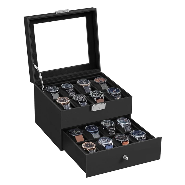 ¡Gran capacidad! Caja para relojes de 2 niveles con 16 ranuras. Acabado de calidad con PU y forro de terciopelo suave. ¡Elegante y duradera! Tapa de cristal transparente. ¡Ideal regalo para amantes de relojes! ¡Compra ya!