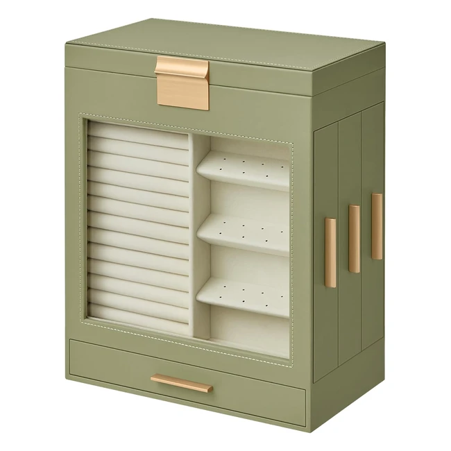 Songmics JBC162C02 Schmuckkasten 5 Etagen Glasfenster Seitenschubladen Großer Spiegel Schmuckaufbewahrung 155 x 261 x 32 cm Laurel Green Metallic Gold