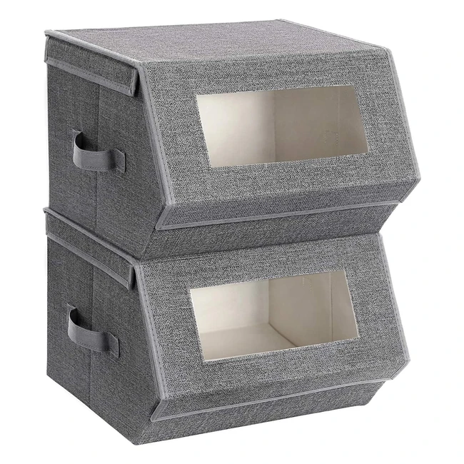 Songmics Stackable Storage Bins RPLB02G - Set of 2, Transparent Windows, Magnetic Lid, Side Handles