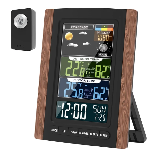 Station Météo Sans Fil avec Capteur Extérieur - Thermomètre Hygromètre Intérieur/Extérieur - Grand Écran - Alarme/Baromètre/Prévisions Météorologiques - Rétroéclairage