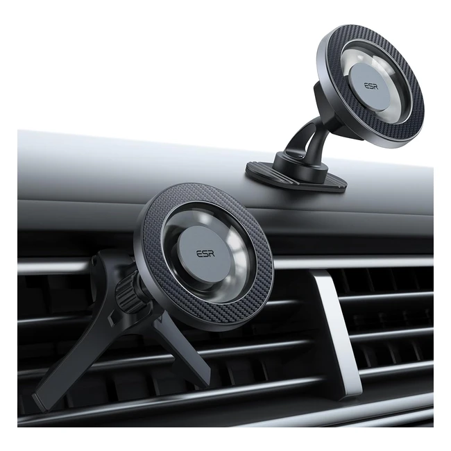 Support Voiture MagSafe ESR iPhone 12 Aimants Puissants Fibre Carbone Noire