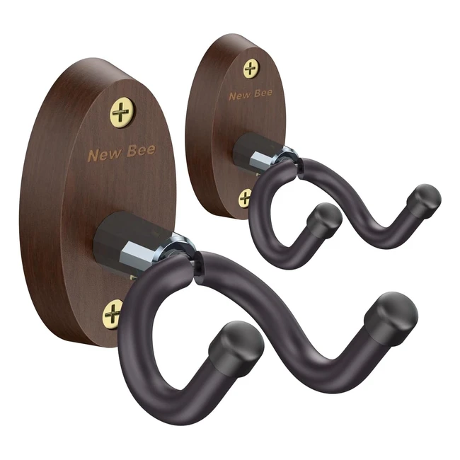 Supporto Chitarra da Parete New Bee - Gancio Universale per Chitarra Classica, Acustica, Elettrica, Basso, Banjo e Mandolino - 2 Pack