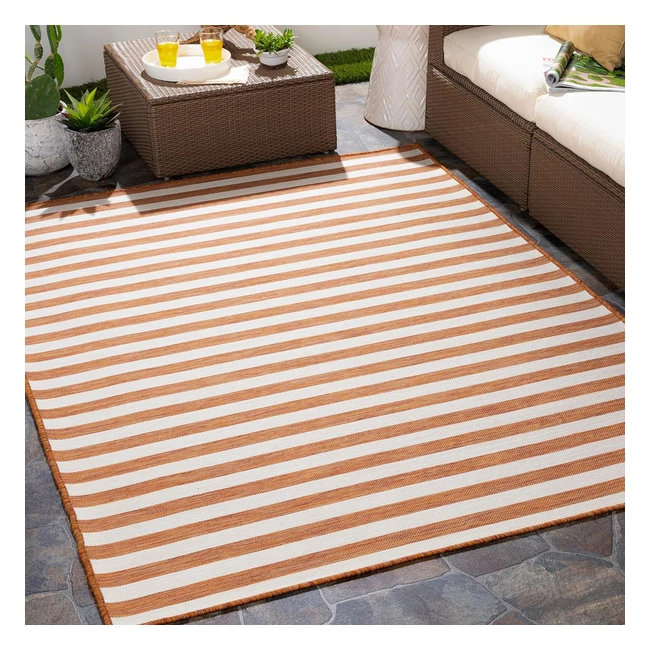 Surya Geometric Indoor Outdoor Rug Runner Valencia Large 80x150cm Rust Cream UV Weather Stain Resistant
