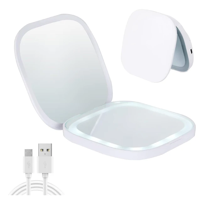 Über dieses Produkt: 1x3x Vergrößerungsspiegel mit Licht, simuliert Tageslicht. LED-Lichter sorgen für makelloses Make-up. Es kann Ihr Gesicht auch in dunkler Umgebung klarer zeigen. Mit Hilfe der LED-Lichter können Sie Ihr Make-up besser abschließen. Einstellbare Helligkeit mit einem Schalterdesign. Die Lichtintensität kann durch langes Drücken des Schalters angepasst werden. 350 mAh wiederaufladbarer Kompaktspiegel, keine Sorge um den Austausch von Batterien. Vollständig aufladen vor dem ersten Gebrauch. Ladeanzeige: Rot beim Laden, Grün bei voller Ladung. Der klassische USB-Ladeanschluss ermöglicht eine sehr bequeme Aufladung. Sie können ihn direkt von einer Powerbank, einem Laptop oder einem Ladegerät aufladen. Multifunktional: Das faltbare Design nimmt nicht viel Platz ein. Sie können es im täglichen Leben tragen. Weit verbreitet für Reisen, Partys, Ausflüge, Einkäufe usw. Perfektes Geschenk: Dieser tragbare Spiegel ist ein perfektes Geschenk für Ihre Frau, Freundin, Mutter, Freun