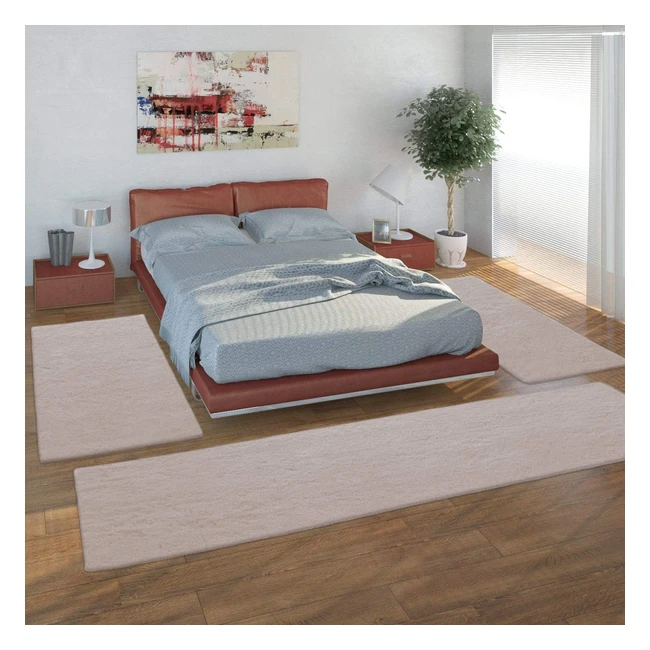Tapis de chambre 3 pièces en imitation fourrure pelucheuse, dimensions 60x90 et 80x300, couleur beige