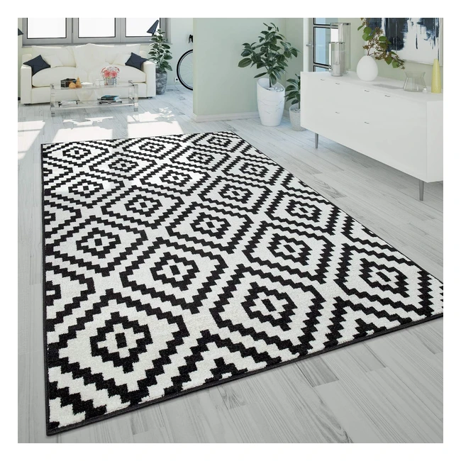Tapis de salon Paco Home, motifs variés, dimension 120x170 cm, noir et blanc