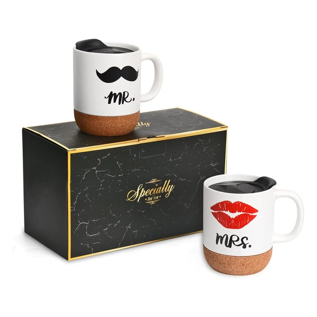 Tasses à café Mr & Mrs avec couvercle et liège - Ensemble tasse couple café pour mariage, anniversaire, Saint-Valentin - Cadeaux de Noël