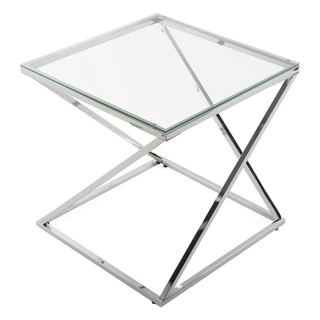 Tavolino Ausiliario Moderno Versa Trento 51x51x51 cm Vetro e Metallo Argento