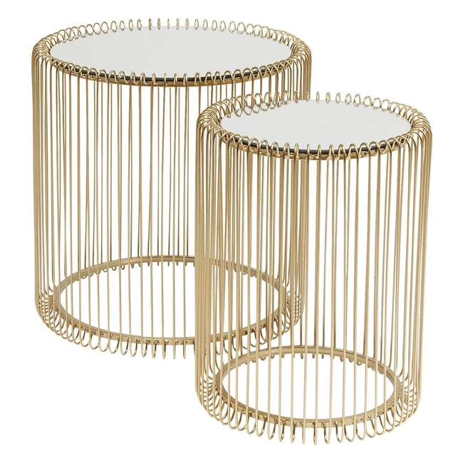 -5%Aggiungi un tocco di lusso e stile al tuo spazio con questo set di tavolini d'appoggio Wire Brass. Design in oro per uno stile lineare ed elegante. Ripiano in vetro specchiato per un tocco di raffinatezza e luminosità . Facile da pulire e con piano staccabile. Ottimo come tavolino da caffè o come supporto per oggetti decorativi. Acquista ora!