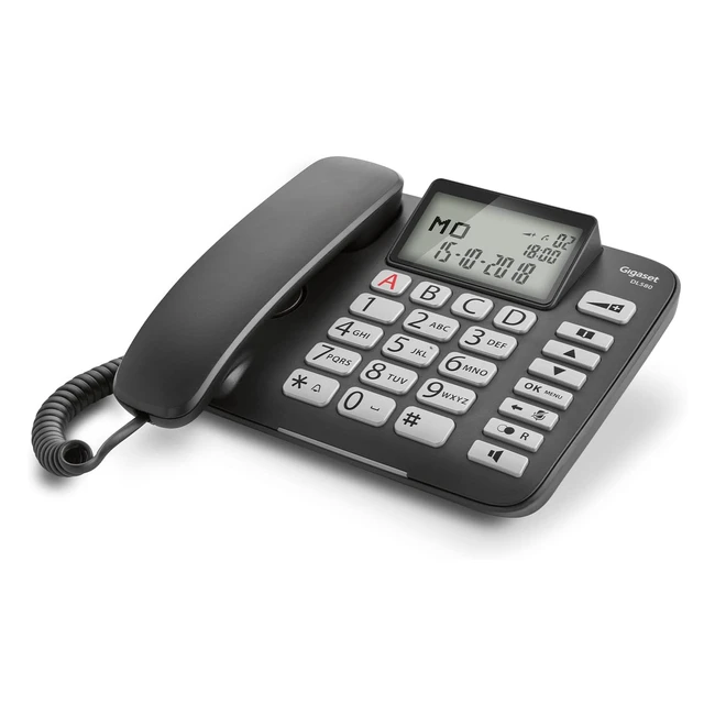 Teléfono Gigaset DL580 con Cable para Mayores - Manos Libres - Gran Pantalla - Compatible con Audífonos - Modo Eco - Negro