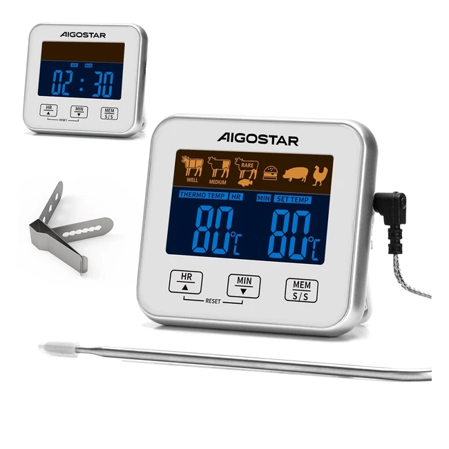 Termometro Cucina Aigostar Elliott - Display LCD Retroilluminato - Letture Veloci e Accurate - Cottura BBQ Forno Arrosto Griglia