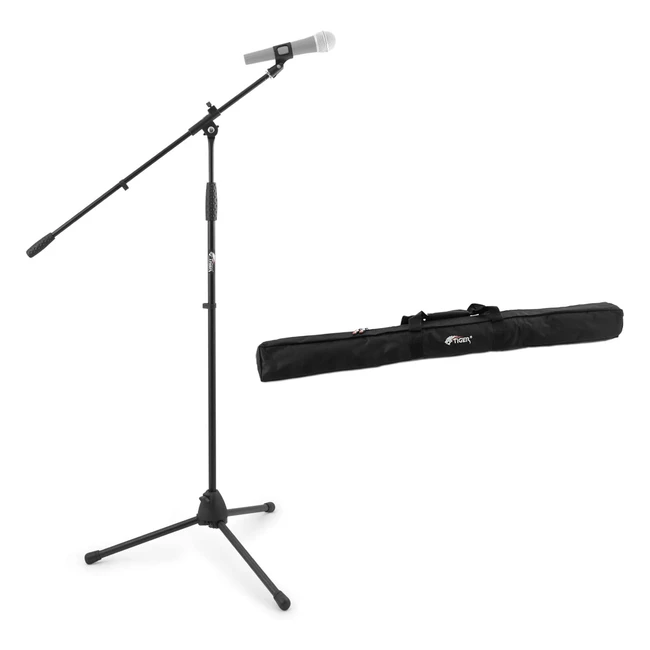 Tiger Boom Mikrofonständer mit Mikrofonhalter und Tasche Schwarz - Verstellbarer Ständer für Musiker